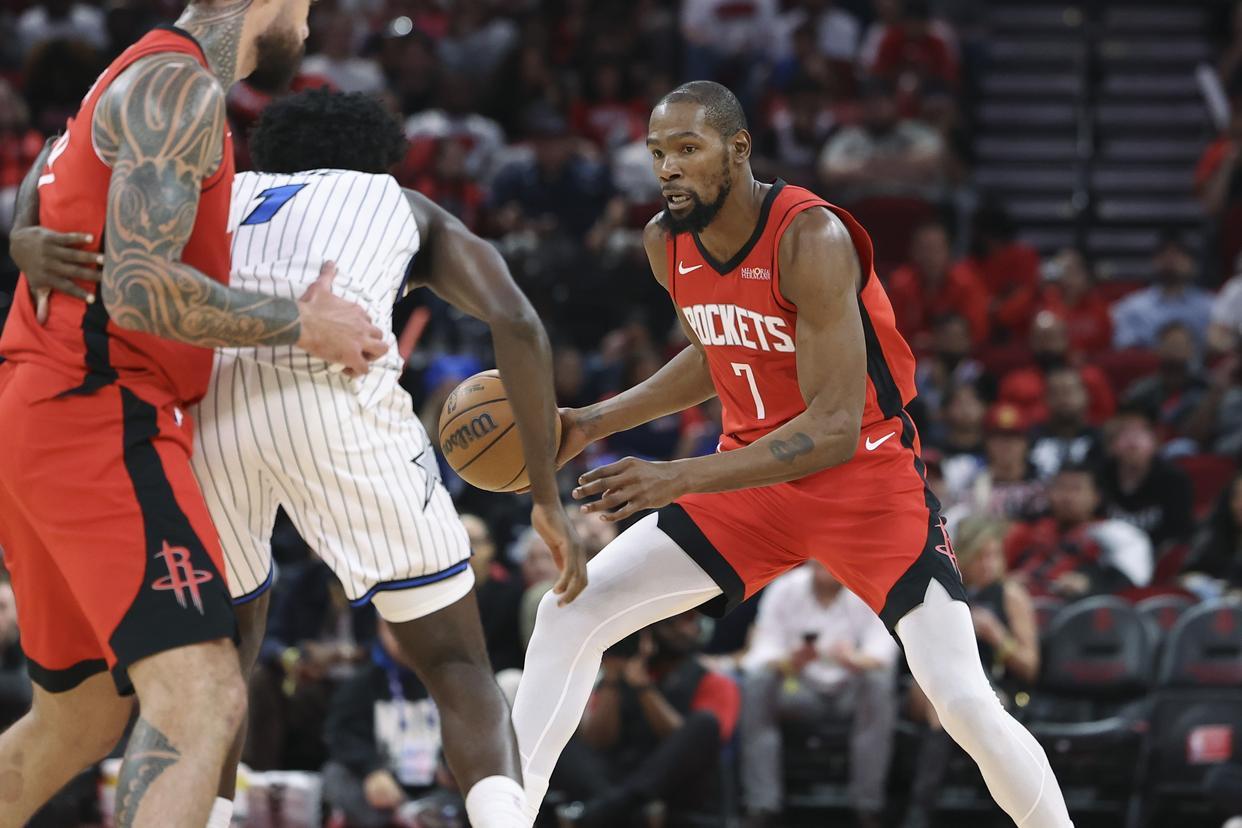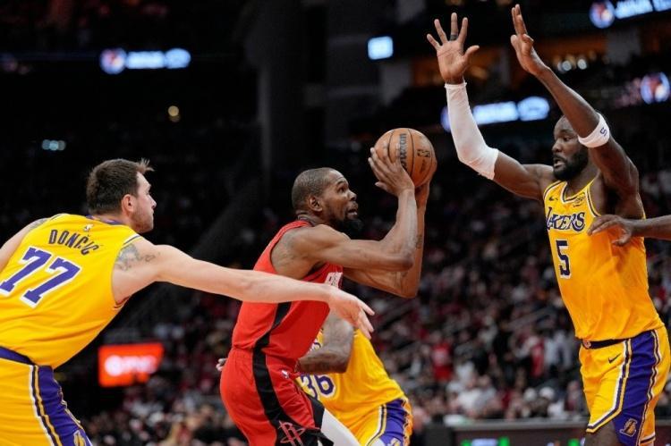 北京时间4月27号,火箭队和湖人队的第4场季后赛。两支球队仍旧各有核心球员缺阵。湖人队这边,他们并没有让赛前出战成疑的里夫斯带伤出战,而东契奇预计要到下一轮才能够复出。火箭队这边同样不容乐观,他们的37岁老将凯文杜兰特,仍旧因为脚踝扭伤缺阵,不知道什么时候才能回来。
