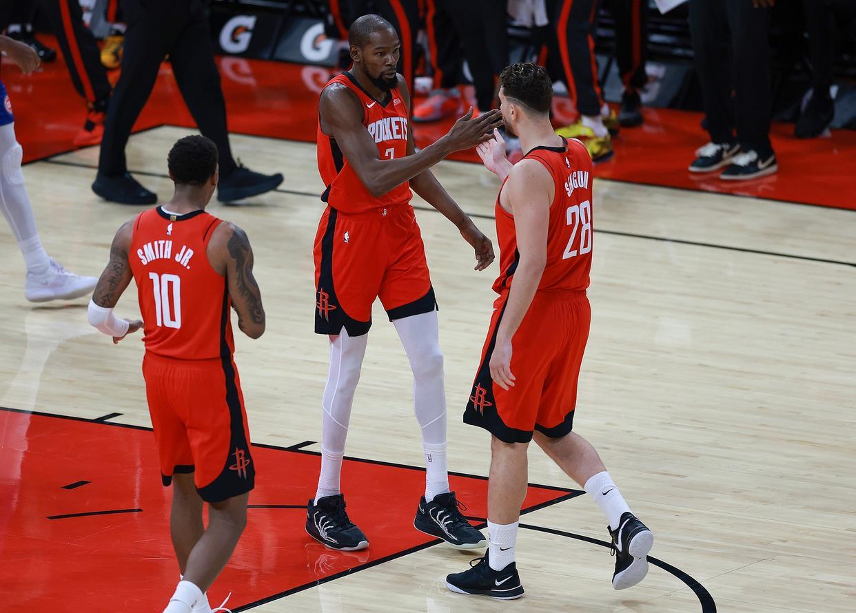 另外,火箭队的杜兰特今天早上来到了火箭队的球馆当中,和球队的医务人员一起进行了康复训练,并且参加了火箭队的会议,还看了比赛录像。本场比赛火箭队首发五虎和前一场一样,仍旧是阿门汤普森、谢泼德、伊森、小史密斯和申京。