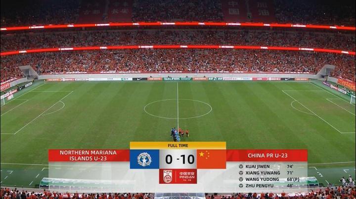 直播吧09月06日讯 U23亚洲杯预选赛第二轮,中国vs北马里亚纳群岛,比赛第71分钟,王钰栋边路传中,向余望在防守球员身前抢点,最终皮球入网。