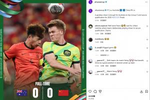 体育资讯09月09日讯 U22国足0-0战平澳大利亚,赛后亚足联发文报告战果。