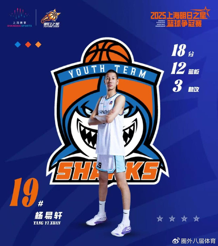另外一一名小前锋是身高198公分的杨易轩。杨逸轩虽然没有张懿赵杰的数据抢眼,但是在全国U17的比赛中,这哥们是上海男篮的核心之一,他在攻防两端都可以很好的帮助球队,这也让球迷对于这哥们非常的期待。